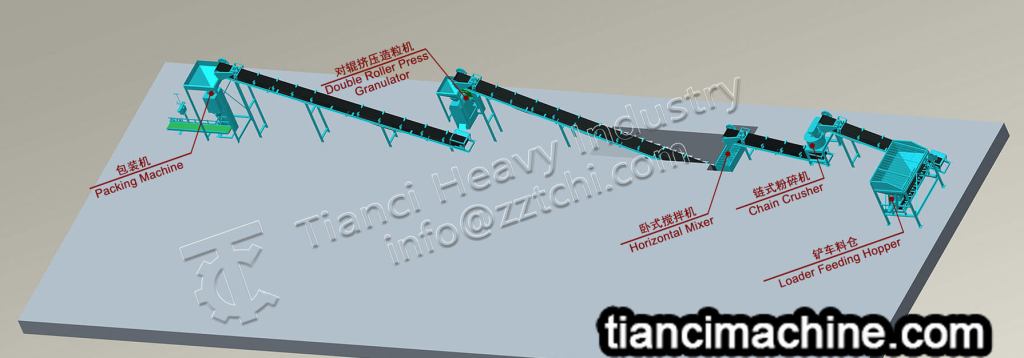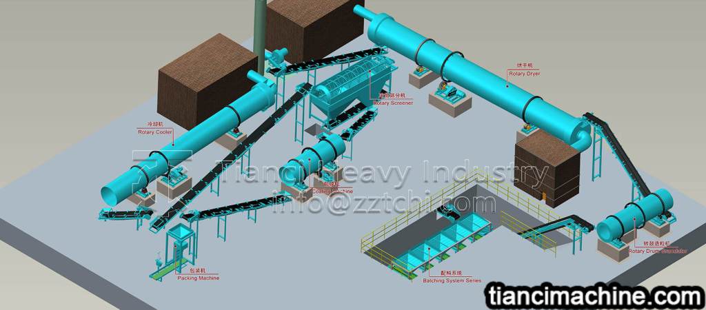 2. Material mixing: mixing the raw materials evenly to improve the uniform fertilizer efficiency of the whole fertilizer granule.